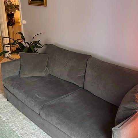 Soffa Petito, Furninova 4-sits. Klädsel Tristan Stone (ljusgrå). Avtagbar tvättbar klädsel och delbar stomme för enkel transport.