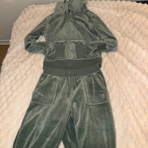 Ljus Rosa/lila Juicy Couture set med byxor och en dragkedjejacka med luva.