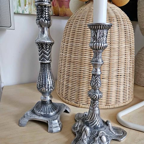 De har en tidlös design som gör att de passar in i de flesta inredningsstilar och sprider ett vackert sken när de är tända. Ljusstakarna är i gott begagnat skick ("Used - Good") och säljs nu som ett komplett paket till ett fantastiskt bra pris.