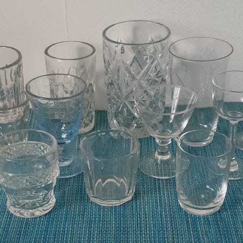 8 st klara hela glas i mycket bra skick. Kan användas som snapsglas eller likörglas. Höjden är 9,3 cm.