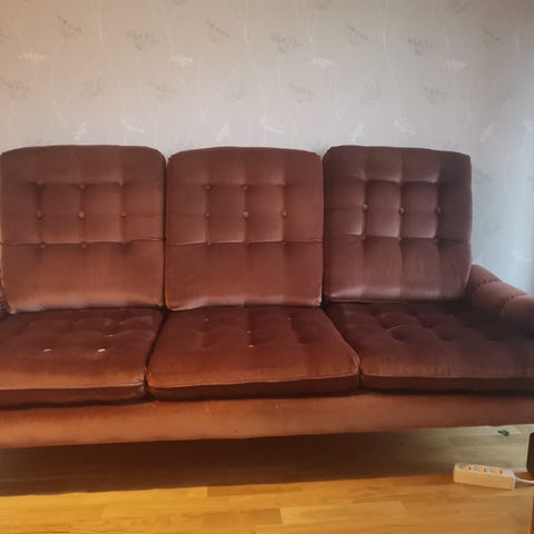 Mycket sparsamt använd; inga fläckar, hål eller revor i möbeltyget. (OBS att fåtöljen och sidobordet inte finns med på bilden, de står på vinden.)