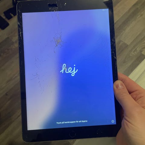 Apple iPad surfplatta med 32 GB lagringskapacitet. Enheten har en skärm med pekfunktion och en baksida i metall. Passar för vardagliga digitala uppgifter och underhållning. Batterikapaciteten är helt okej på den med tanke på att det är från 2018. Laddare eller fodral medföljer ej.