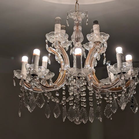 Genéve Ø100cm är en mycket pampig & vacker klassisk kristallkrona med influenser från den välkända Maria Theresa stilen. Denna varianten av modellen Geneve är i två nivåer med 12 armar i första nivån och 6 andra armar i andra nivån. Såväl pendanter som armar är i äkta kristall med en mycket, mycket vacker dekor som snirklar och vrider sig ut över armen. Genéve är en av våra mest exklusiva och vackra lampor med mycket tanke & hantverk bakom. Genéve finns även i en större variant med tre nivåer och en mindre variant.
