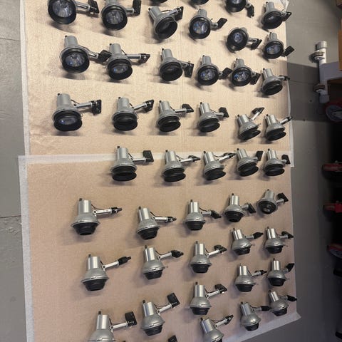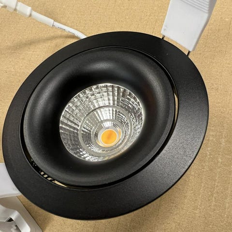 Skenmonterad dimbar ledspotlight 12w som är ställbar i ljusstyrka och spridningsvinkel 20-60 grader. kontakten. 230v. Färg:Vit.Styckpris 500KR finns totalt 15st. (Nypris för 1 lampa ligger på ca 1100kr).
