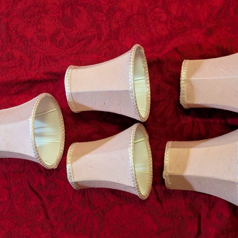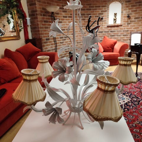 Charmig TAKLAMPA i trä med 4 textil skärmar - vintage känsla !
