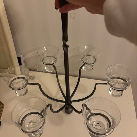 Vintage KRONA i trä och 4 GLAS skålar för levande ljus