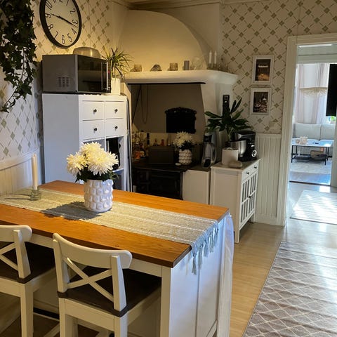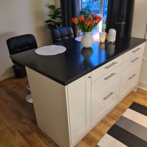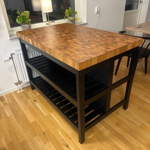 Köksö med träskiva och hyllor