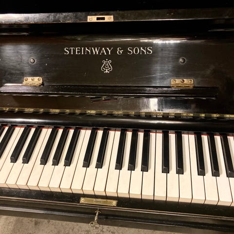 Steinway & Sons Upright Piano i svart utförande. Pianot är av modell Z med serienummer 293333.