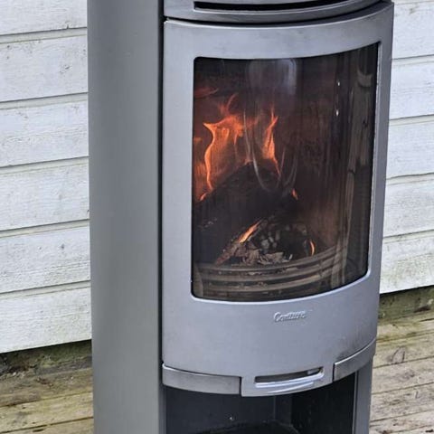 Contura 520 i vit färg. Tillverkad med glaslucka för insyn till elden. Passar för utmärkt för uppvärmning och som mysig inredningsdetalj i hemmet.