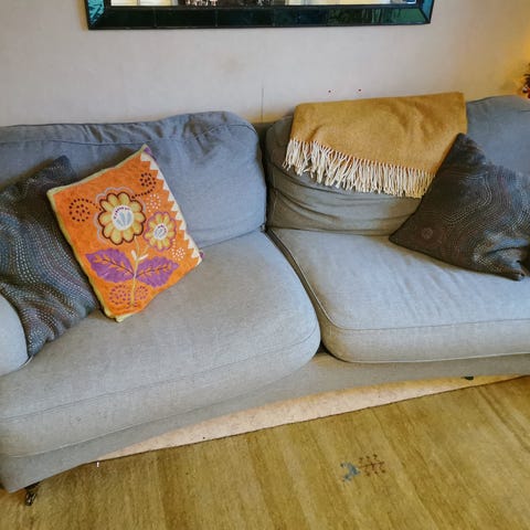 Bekväm soffa, mjuk stoppning, konstläder