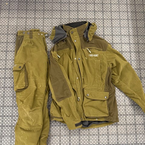 Euro Hunt wilderness wear i camouflage och orange färg. Jakken är designad för jakt och friluftsliv med funktionella detaljer och slitstarkt material. Storlek C150