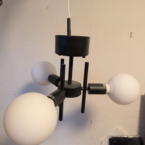 Taklampa med text Love, design av Åsa Gessle