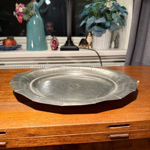 Stämplad på undersidan med krona, SCANDIA TENN samt 110 (kvalitetsmärkning för tenn).