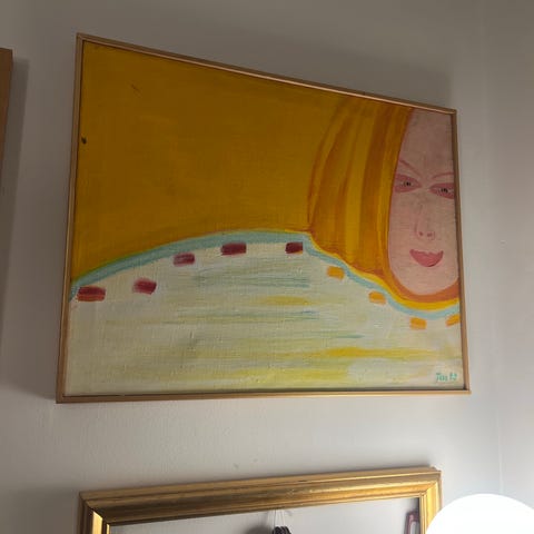 Vackra och tankeväckande målning. Motivet föreställer en kvinna med en mås som flyger mot himlen- ett drömlikt och fritt motiv med både styrka och stillhet.