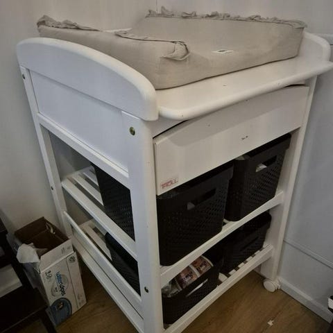 Synligt använd, vg se bilder. Vi stördes inte av skavet då det döljs när man lägger på en skötmadrass.
