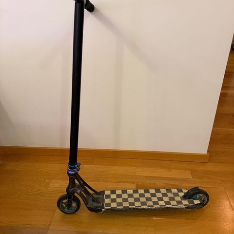 Svart Ethic kickbike med blå detaljer. Tveka inte med frågor!
