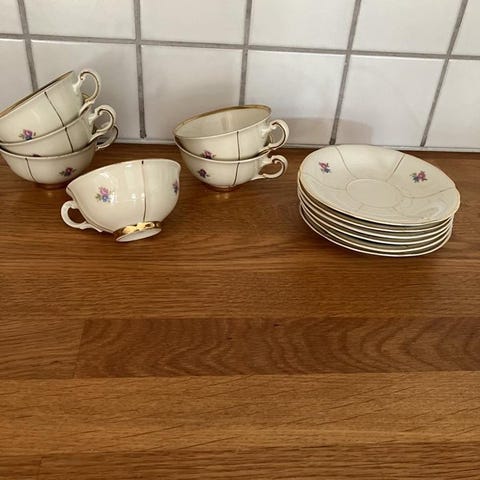 B&G, 12 st koppar, fat och assietter