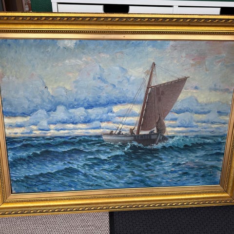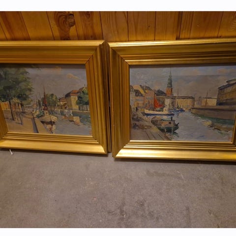 OLJEMÅLNING " Hamnen vid solnedgången " 1900 - tal