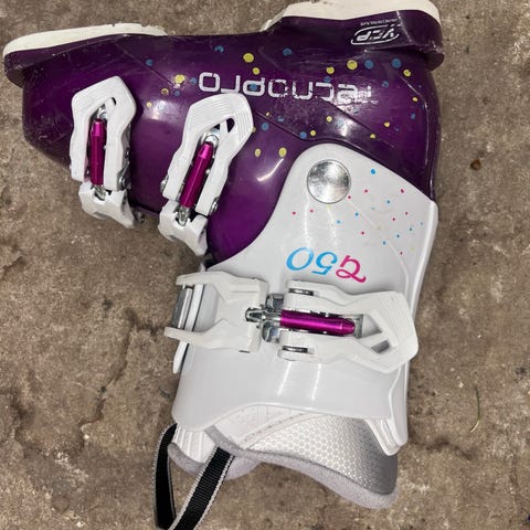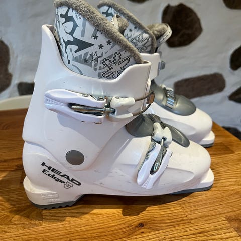 Head skidpjäxa i svart, vit och röd färg. Utrustad med två spännen.