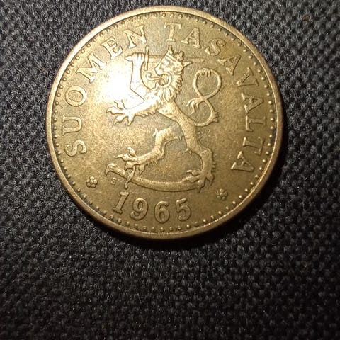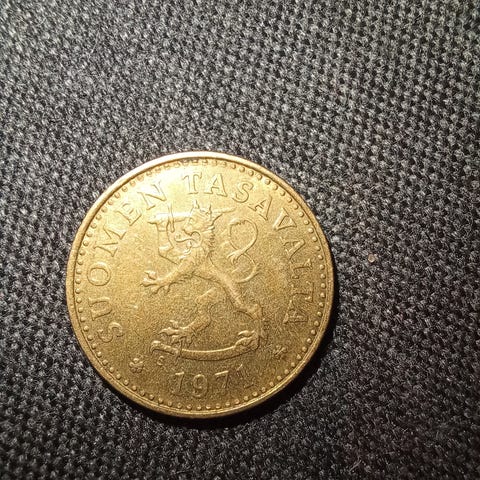 Suomen Tasavalta 1 Markka mynt från 1980. Myntet är tillverkat i metall och har en diameter som är standard för 1 Markka mynt. Framsidan visar ett lejon och baksidan har valören 1 Markka med dekorativa löv.