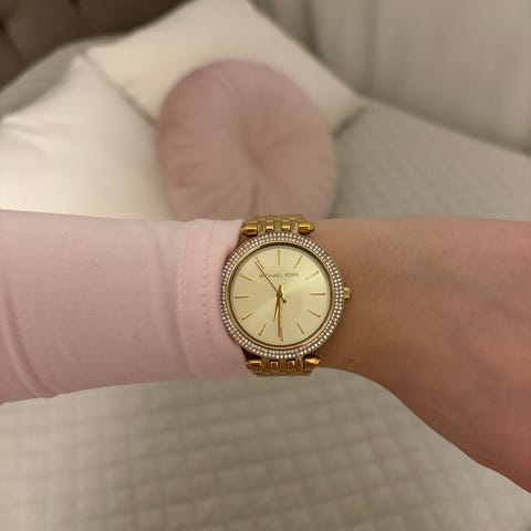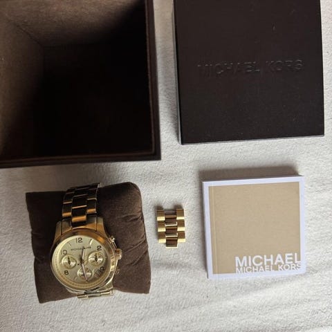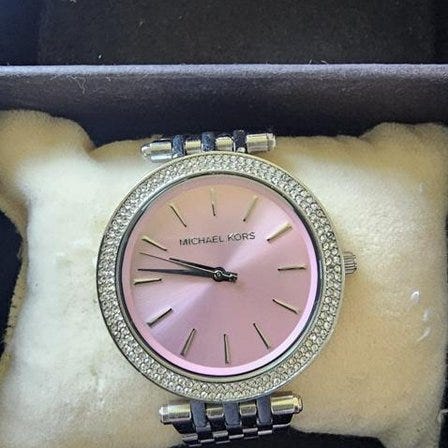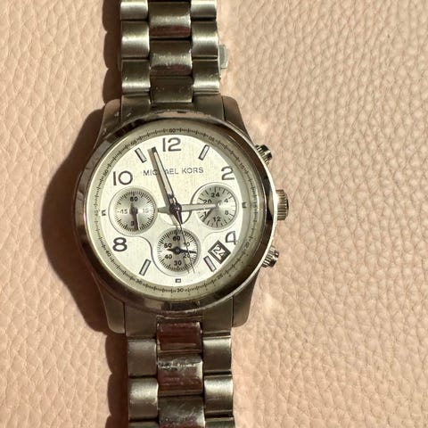Michael Kors klocka i stål för kvinna. Klockan har en rund urtavla med mönster och en länk i rostfritt stål. Passar för vardagligt bruk och olika tillfällen.
