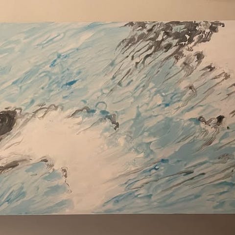 Abstrakt konsttavla med blå och guld färgtoner, storlek 120X80 cm. Man kan ha den hängandes i alla vinklar.