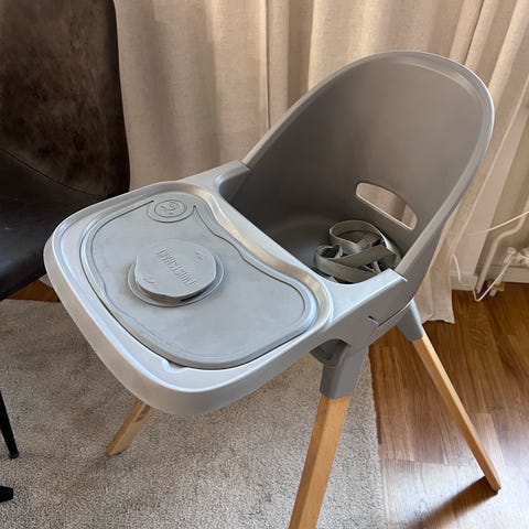 Stokke barnstol i svart färg. Barnstolens design är anpassad för barn och kan användas vid matbord eller andra sittplatser. Tillverkad i material som ger stabilitet och komfort för barnet. Avtagbar bygel