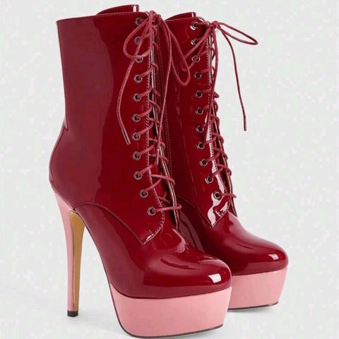 Sexiga stövletter i rött stilettklack med platå strippskor