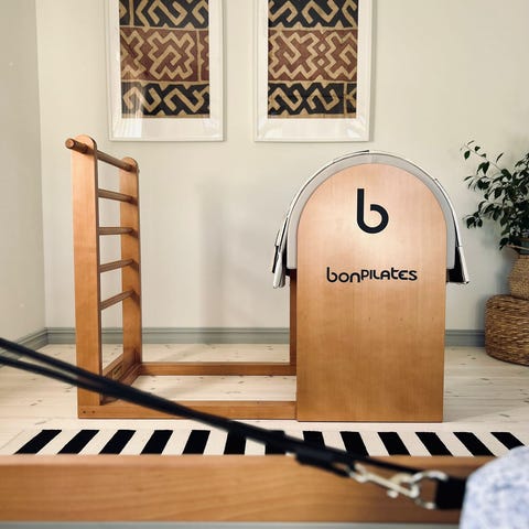 ALongSong Pilates Bar Kit träningsredskap med motståndsband som används för olika övningar inklusive mag-, rygg-, bröst- och armträning. Setet innehåller en pilatesstång och flera motståndsband. Instruktionsmanual medföljer för korrekt användning.
