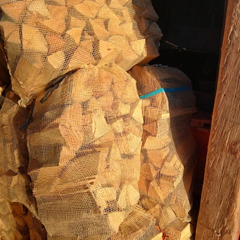 Torr björkved, 30 cm. Travat i 60 l säckar.
