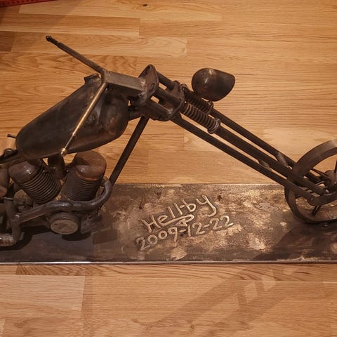 HD i trä för den sanne finsmakaren av tunga motorcyklar, här i något lättare hyllformat. Antik och välgjord.