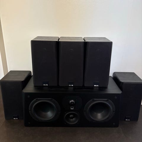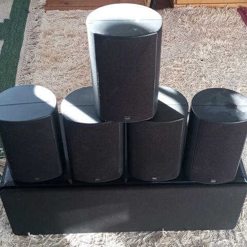 Innehåller fyra satelliter, en center och en baslåda. Väggfästen medföljer.