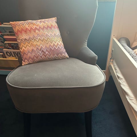 Viss missfärgning vid armstöden se bild, annars inga större defekter.