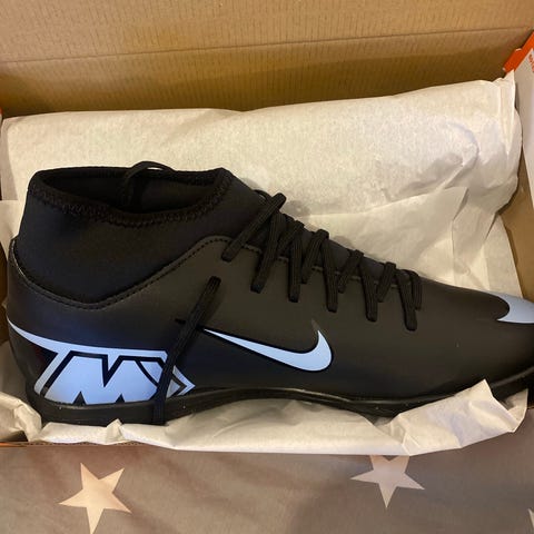 Säljer ett par Nike Mercurial Air Zoom fotbollsskor. Dem är köpa för 2899kr hos unisport 25dec. Men det är nu dags att inse att dem var fel i fel storlek. (Använda en träning). Storlek (11,5US) (45,5EUR) Inget slitage inget fel med dem, hör av er vid frågor eller funderingar.