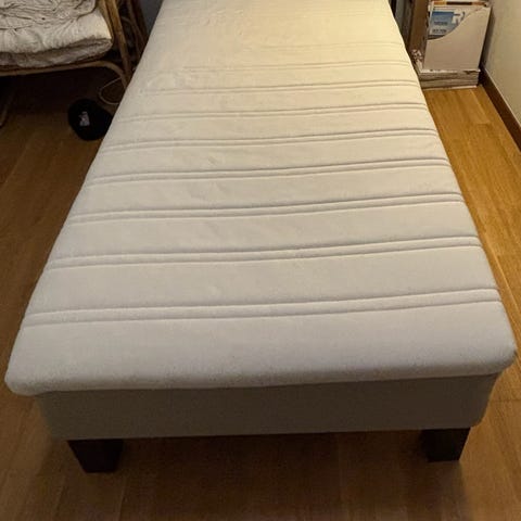 IKEA Snarum resårbotten med tillhörande sängben i Ek 20 cm samt bäddmadrass allt inköpt 2021.