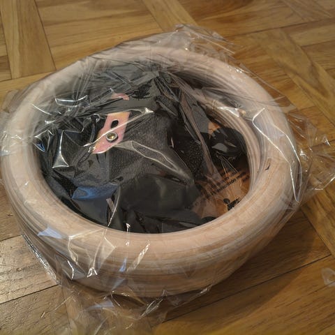 Gymnastikringar som vi hängde i trappen för barnens skull, jättekul att leka med.