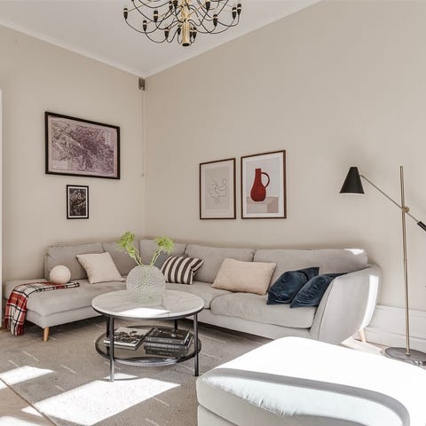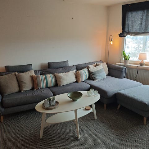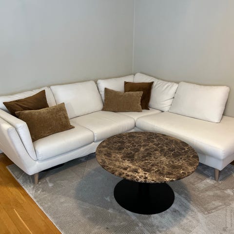Hela divan-delen tas av för smidigare transport. Soffan delas alltså i två.