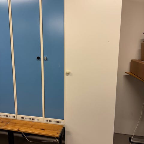 Garderoben i hörnet har en extra skiva fastskruvad på utsidan som självklart tas bort i samband med försäljning.
