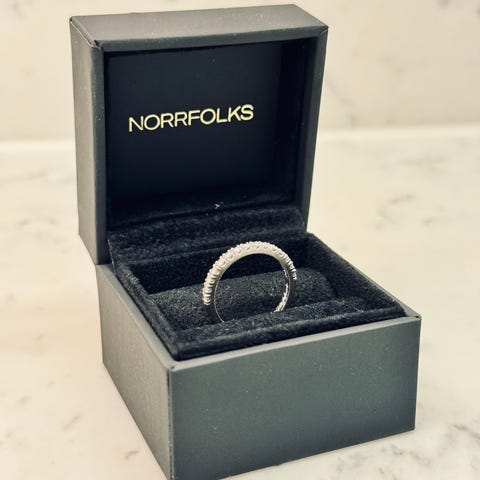• Nypris/Länk: norrfolks.com/product/classic-halo-round-diamond-ring-pave-18k-white-gold/