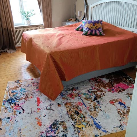 Selling this incredibly soft and decorative rug with a beautiful graphic diamond pattern. It adds a cozy and warm atmosphere to any living room or bedroom.