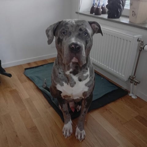 Han är född 2025-05-16 och är en blandning mellan Old English Bulldogge och Standard Bully.