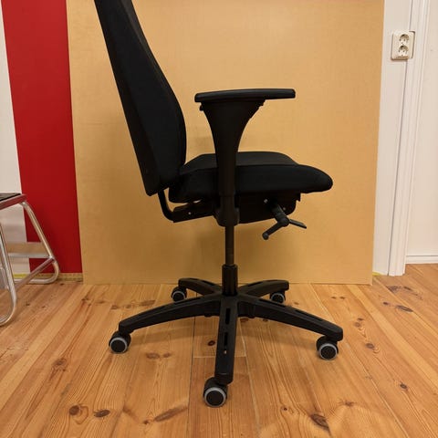 Säljer min gamla Kinnarps kontorsstol modell 8000. Köpte den 2004, sen har den använts av mig på hemmakontor. Dvs inget skoskav på underrede.