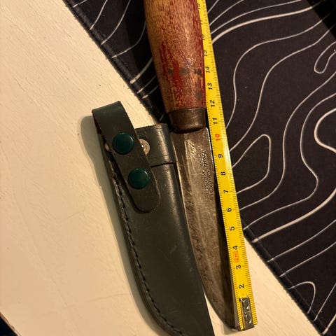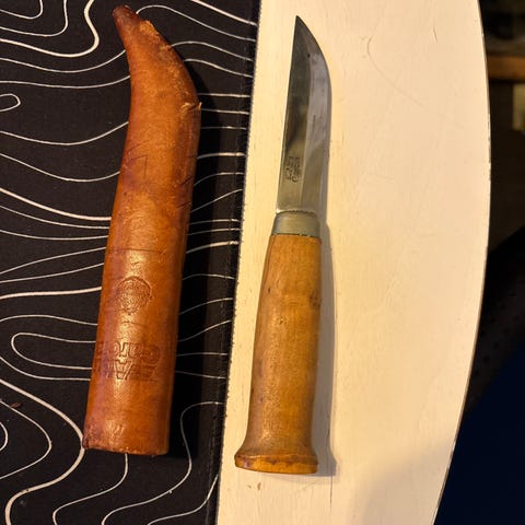 Detta är en skedkniv från Erik Frost Mora, känd för sin användning inom träslöjd. Erik Frost var en välkänd knivtillverkare från Mora, Sverige, aktiv under tidigt 1900-tal.