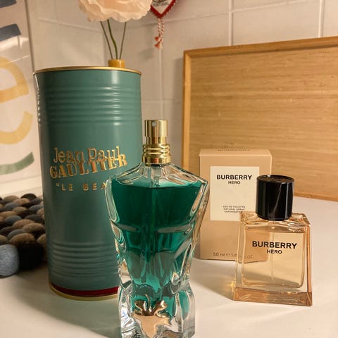Parfymen innehåller drygt 80ml. Tvålen är använd ett par enstaka gånger (3-4). Förpackningen är hel och ren men är tom.