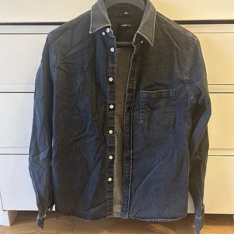 Helt ny sjukt snygg stilren och skön populör j.lindeberg Jeanskjorta i storlek L sitter som m. Inga defekter alls utan helt ny! Sjukt snygg på och passar till allt av högsta kvalite!