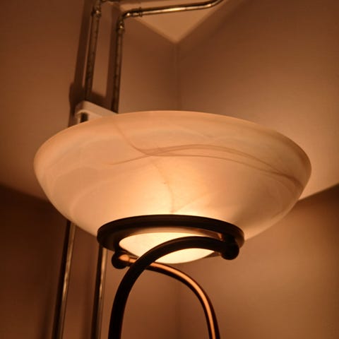 Lampan har stått på samma ställe sedan köpet så den är i princip i ganska gott nyskick