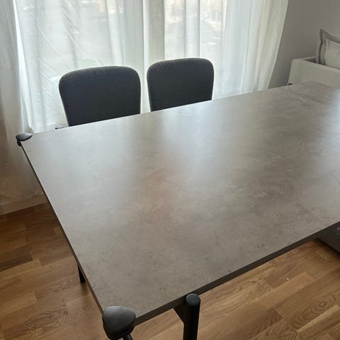 Matbord från Jysk. Stolar okänt märke. Priset kan diskuteras vid snabb och smidig affär. En hel del märken och repor, särskilt på stolarna. Kan bli riktigt fina om man målar om!