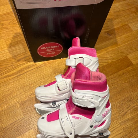 Rookie 4 rosa/vita skridskor i justerbar barnstorlek 33-36.