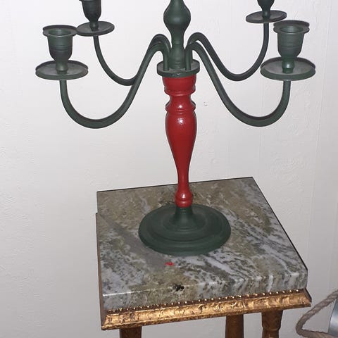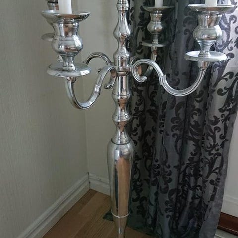 Trearmad ljusstake tillverkad i metall med en mörk finish. Designad för att hålla tre ljus, lämplig för dekorativa ändamål i hemmet.