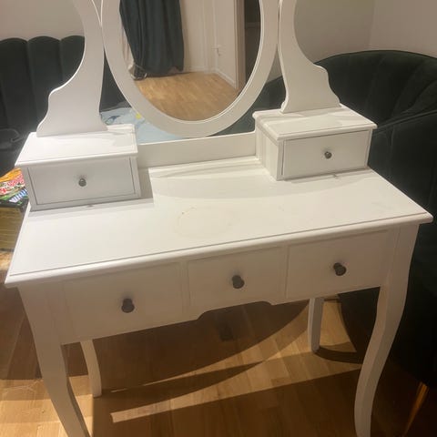 Säljer ett IKEA BRIMNES sminkbord/toalettbord i svart med uppfällbar spegel och smart förvaring. Perfekt som sminkbord men funkar även som litet skrivbord. Stabilt och i bra skick.
